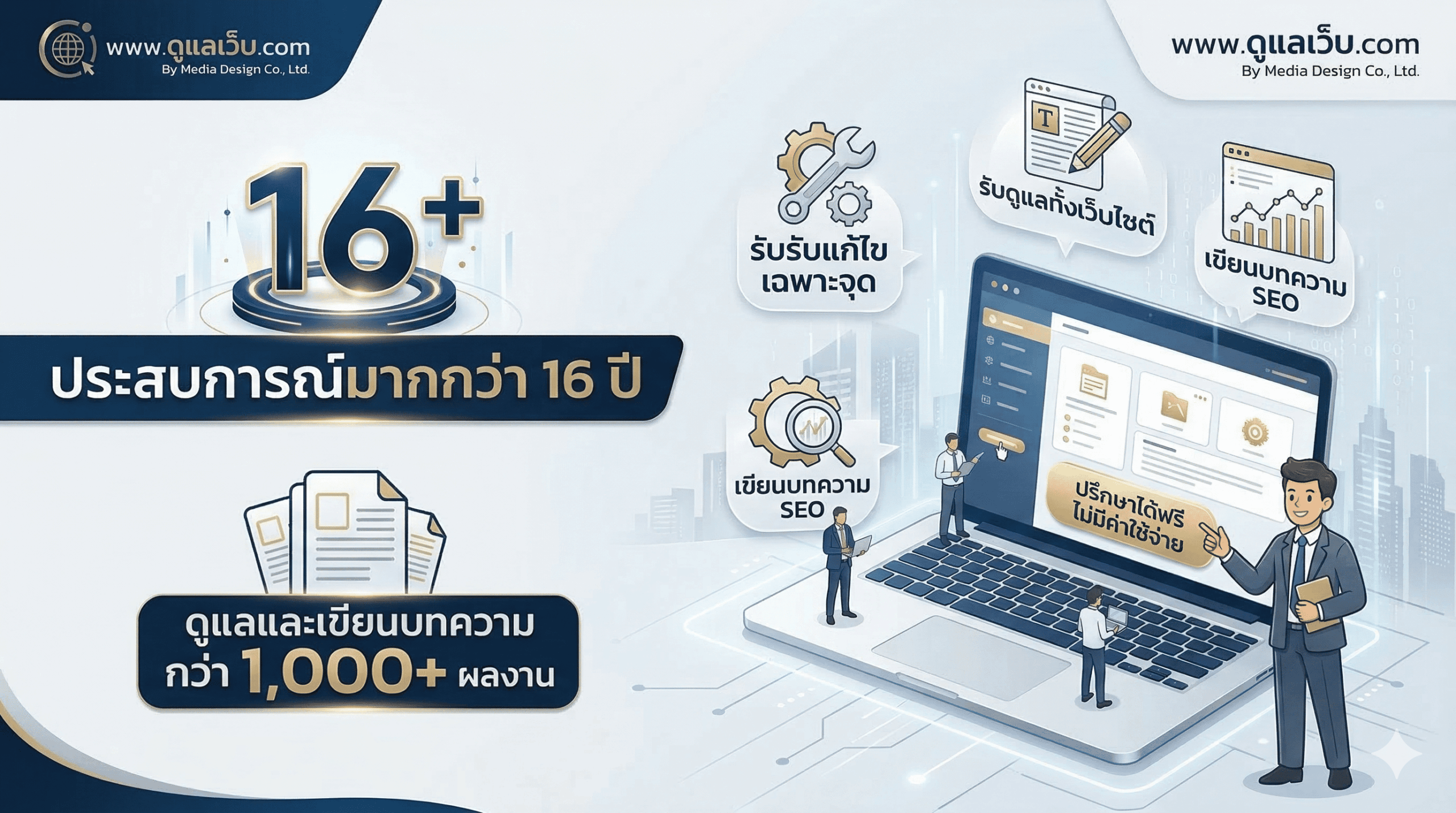 ในยุคที่ทุกธุรกิจต้องขับเคลื่อนด้วยระบบออนไลน์ การมีเว็บไซต์ที่ใช้งานได้ดีตลอดเวลาคือหัวใจสำคัญ แต่การดูแลเองอาจยุ่งยากและเสียเวลา www.ดูแลเว็บ.com โดย Media Design Co., Ltd. พร้อมเป็นพาร์ทเนอร์ดูแลเว็บไซต์ให้คุณในราคาที่เข้าถึงง่าย